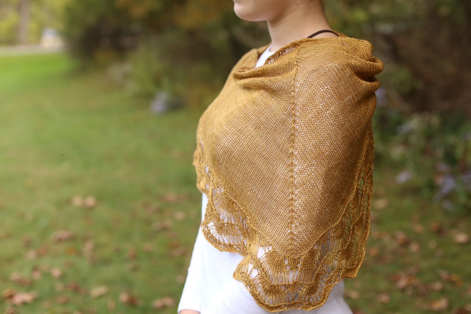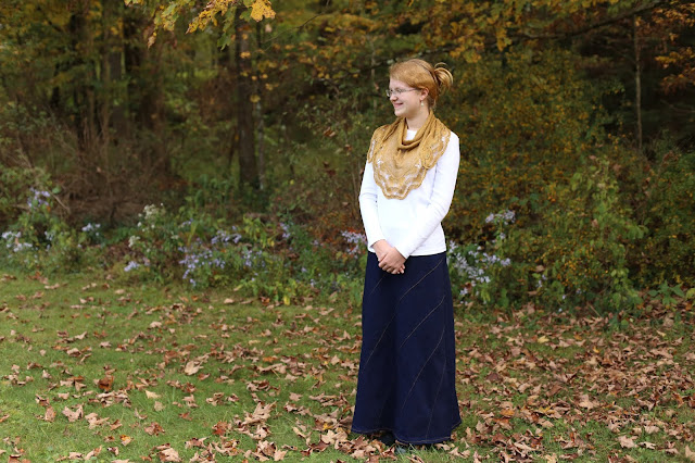 This year she requested that I knit her a gold shawl instead of our traditional birthday sweater. I had her pick the pattern herself because I wanted to make sure she would really like it. Knitting for teenagers is different than knitting for toddlers who have no opinion on what they wear. Ha,ha. Thankfully she still loves my knitted gifts. She chose the Afterglow shawl. I made a couple of modifications to make it the way she wanted. My rav notes on it are here. Shawl pin is of course by our favorite makers - Wooly Moss Roots.