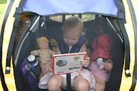 We woke up early on Sunday so that K would take an early nap and be ready to go to Kinderhaus for the photos. After getting some breakfast and some things done around the house, we went on a bike ride to the park down the road. K, as usual, took an array of babies (dollies) with her and even a book this time. She fell asleep towards the end of the bike ride, so after collecting a cattail for her nature table, we took her home to finish her nap. Then when she woke up, we drove to Kinderhaus. She had sooo much fun there, and they got the sweetest pics of her and Fiona together. K will tell you who her best friend is now: "Nona!" (her way of saying Fiona) The pics will be up on the website soon. Right now they only have this one up: