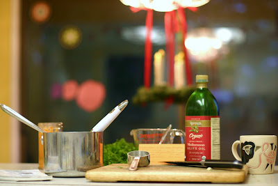 We followed the custom for lighting the wreath with C lighting the candle. Yes, my baby lit the candle! Of course, I helped her but she did most of it herself. I honestly don't know what was brighter, the candle light or the smile on her face!