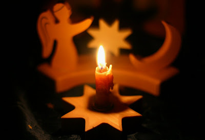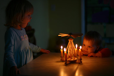 Popcorn strung on our tree. I underestimated how long this project would take! I have been working on it during C's nap time for the past three days and only have about 1/4 of the tree done. At this rate I think I'll have it done by Christmas Day! K keeps telling me to hurry so we can put our ornaments up. Patience, dear child, patience.