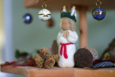 K wanted her doll house to be decorated for Christmas so I added some trimmings on the roof. I hope to make more things to go in the dollhouse like a knitted Christmas tree, but this month is flying by much too fast!