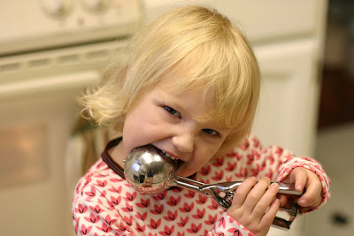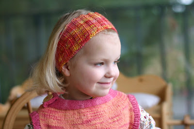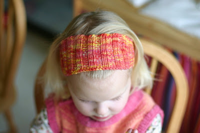 this gift she made for Christmas and as soon as I saw it, I knew it would be the perfect solution. Not only does it fit snugly and hold her bangs back, it also keeps her head warm for those cold day inside our house and it's a great way to use up leftover yarn.