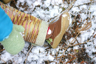 Luckily they are a fast knit. I finished up the first sock and am about halfway done with the second. K is so excited about them she has been stealing the finished sock and wearing it under her slippers thinking that I don't notice.