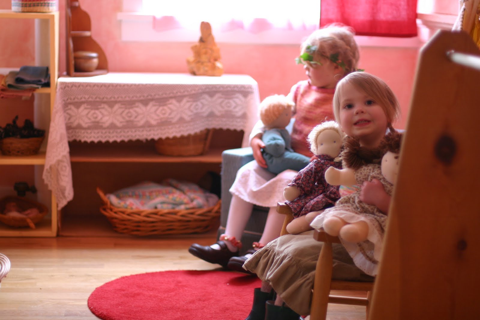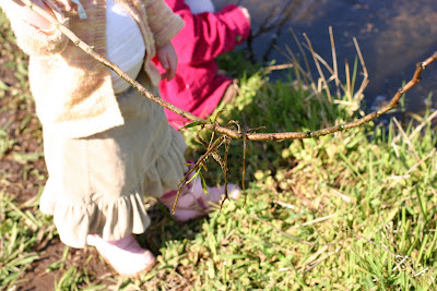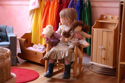 I tried some of those 'Teach Yourself to Knit' type books but I just couldn't grasp it. I needed to see someone knitting to wrap my brain around it. When K was 6 months old or so, my local Attachment Parenting group had a 'learn to knit night'. Finally, I would learn! There were quite a few of us there and I, again, was having a hard time understanding. I did at least master casting on. Then, ironically enough, a former Waldorf kindergarten teacher arrived with her baby in her arms and sat next to me. She taught me how to do the basic knit stitch. Over the next few days I did a few rows of knitting but then got bored. So as you can see, I never did do the typical first project of knitting a scarf. The teacher then gave me the tip of knitting something from 'A First Book of Knitting for Children' by Bonnie Gosse and Jill Allerton. This book is meant for children to learn how to knit with, so needless to say, it is written very clearly and easy to follow. I choose the simplest pattern in the book - the lamb. It's done in garter stitch (your most basic knit stitch) and it challenged me enough with sections needing binding off and casting on to keep my interest. I couldn't stop knitting them. I soon figured out that with different weight yarn and different sized needles I could made the lambs any size I wanted to.