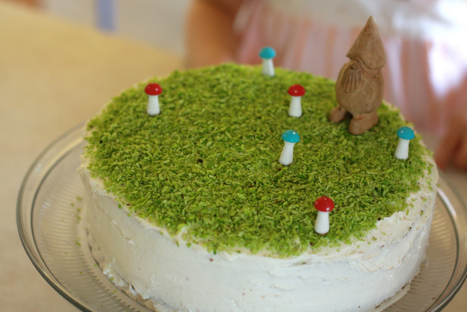 We 'frosted' it with cream cheese and topped it with edible moss and wooden toadstools made by the ever so talented Tricia at Prudence & Virtue. (If you haven't checked out her store and/or blog before, please do! She is a true sincere soul and I love all that we have in common. I have more to share on her later...) I did not get to partake in it due to the cream cheese but I am hoping it was good. The girls liked it at least.