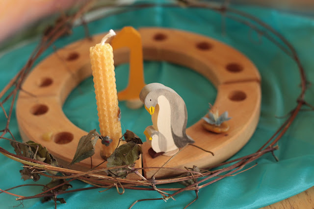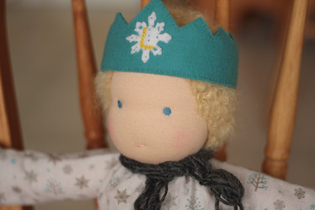 usual pattern). It wasn't until very late at night on the eve of his birthday. I just wasn't inspired or motivated for some reason. I kept it really simple with a snowflake in the center. I wanted to add candles (since he is named after Saint Lucia), king winter and more but it just wasn't happening. I do plan on adding to his crown until I feel it is finished but this was done enough for his first birthday. None of my other children kept their birthday crowns on for more than 5 minutes on their first birthdays so I didn't expect him to be any different. Next year it will be better, and I am sure he will understand.
