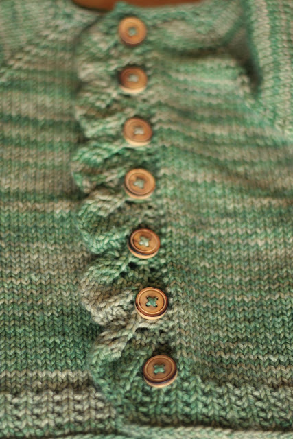 I modified the pattern here and there (don't I always). I didn't like how it left a gap towards the bottom almost in need of an additional button. You can see all my mods on my