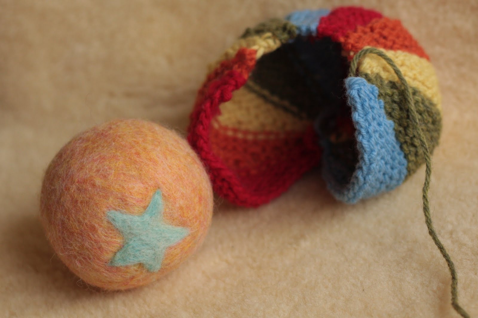 . I planned on making a bunch of these knitted balls but then I channeled my inner Kim John Payne and remembered ‘less is more’ and stuck with just one. I mentioned before that I was going to try stuffing it with a wool ball I had already felted (from a previous project) instead of wool stuffing and it worked! It felted down perfectly over the pre-felted ball. It made it more of a bouncing ball, which is a plus and now I can throw it in the washer when it gets dirty.