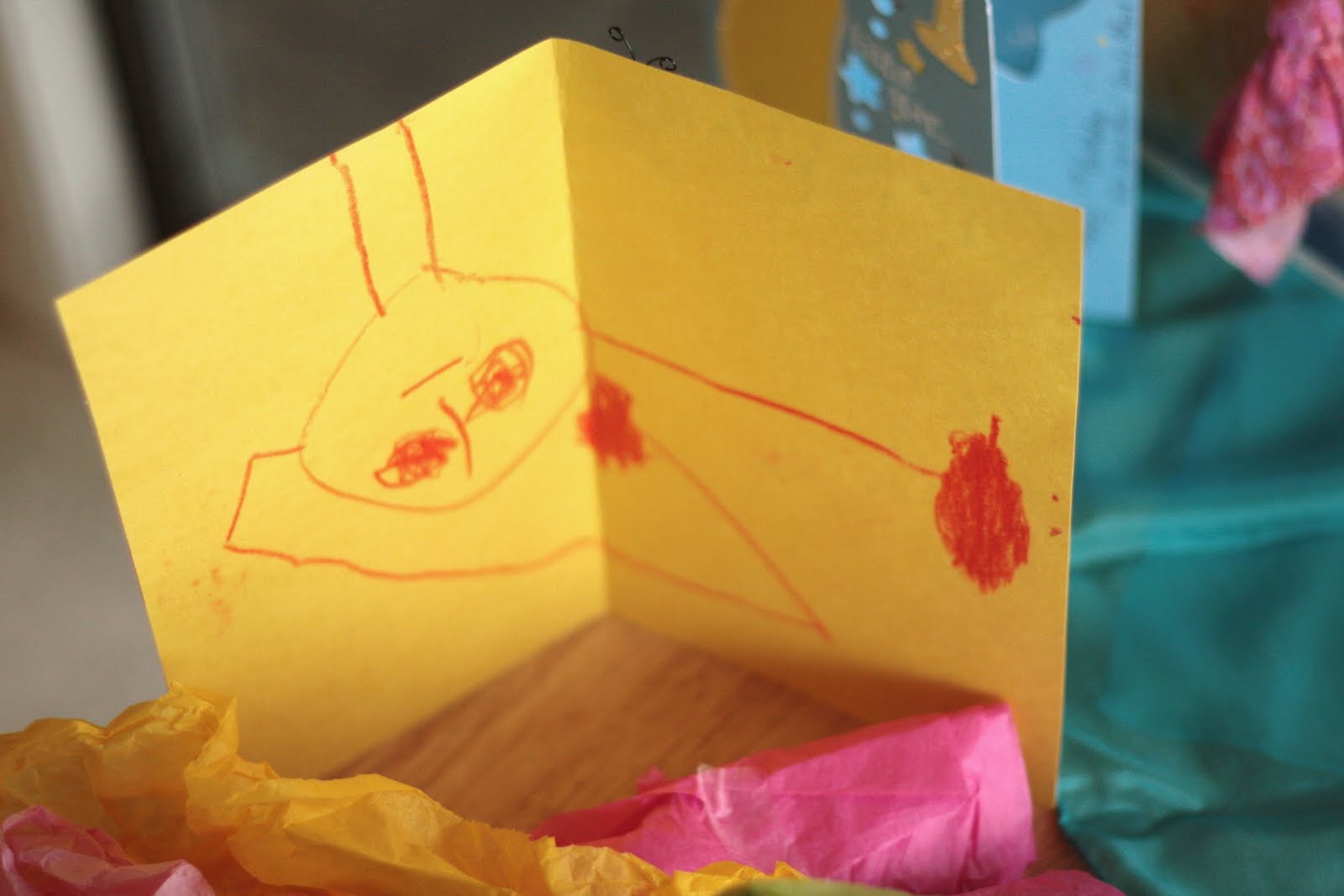 She also decided at the last minute on the afternoon before Baby L's birthday that she wanted to make him an angel puppet/mobile. She cut out the fabric and quickly created it for him.