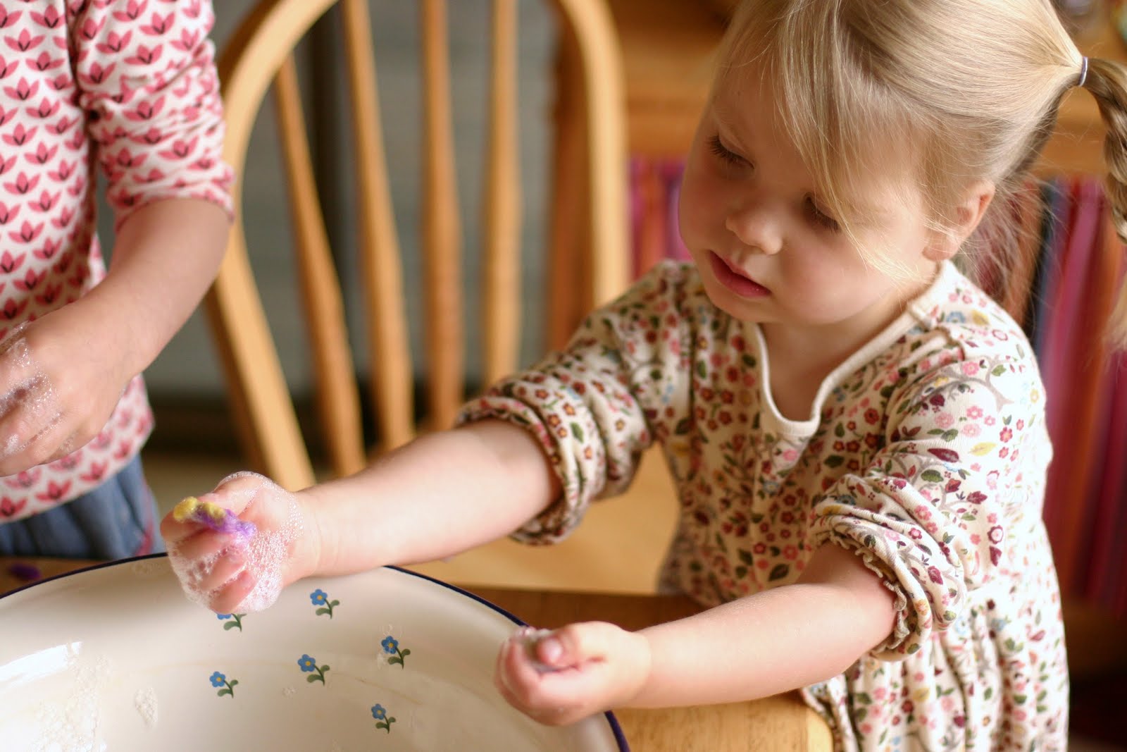 A basket before the felting process"Fruits, like plants, also convey positive feelings. Scriptures calls our virtues as fruits. We are asked to bear fruits which can be savoured by others to find happiness. In olden times, kings and nobles used to send fruits to others as symbols of friendship. Sending fruit baskets as gifts symbolises friendship and companionship."That seemed like the perfect symbol for what this project was about so I went with that. I had quite a few mishaps in creating my pattern at first, and the girls had an endless supply of various failed prototypes. But in the end it all somehow came together.
